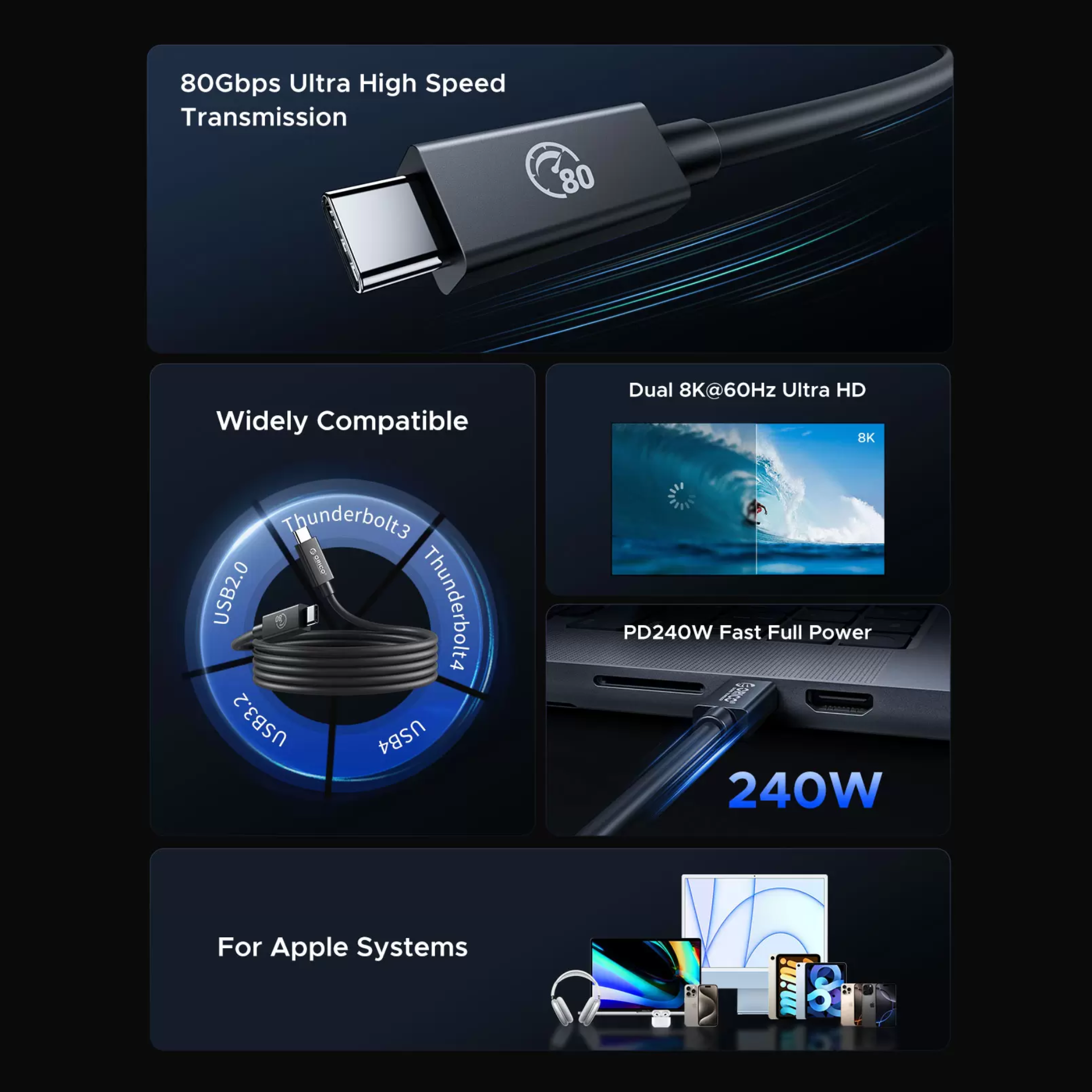 Cáp Thunderbolt5 - 8K 60Hz Type-C