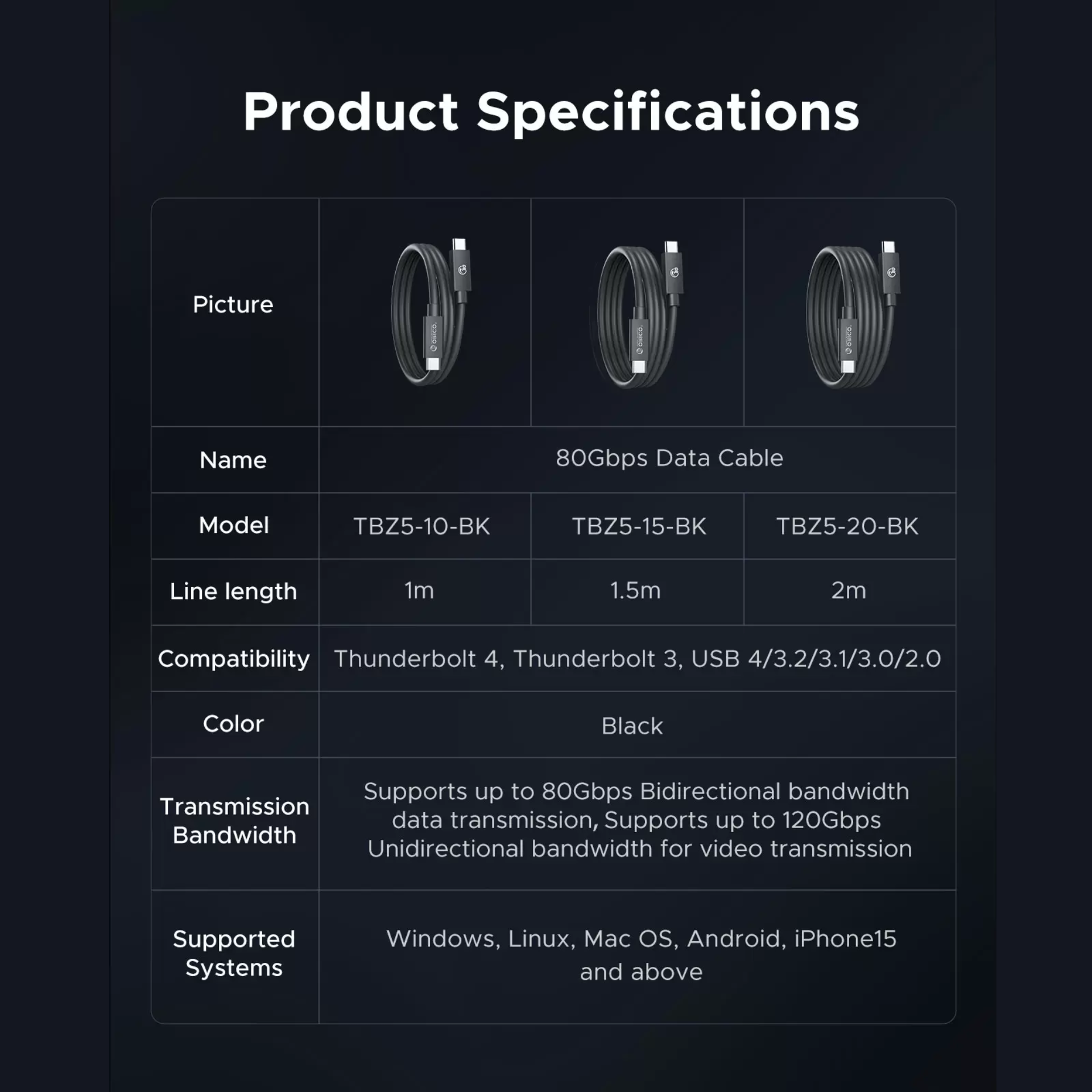 Cáp Thunderbolt5 - 8K 60Hz Type-C (TBZ5-20)